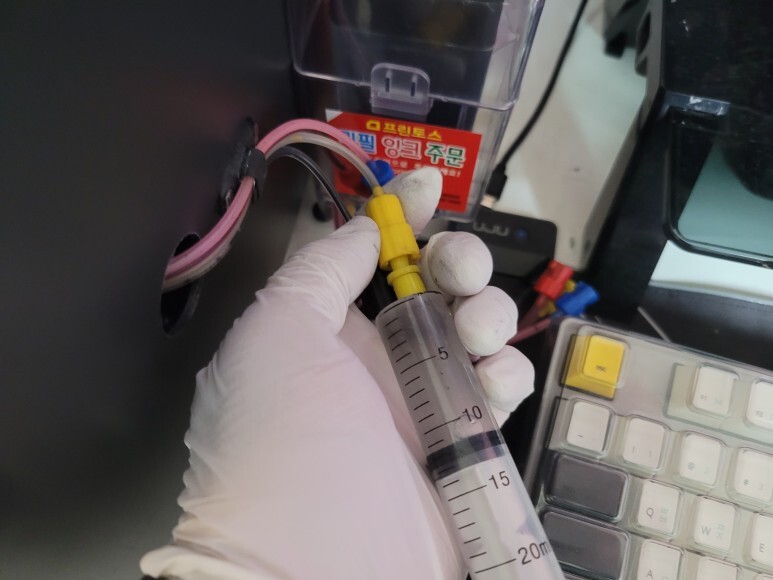 ● 호스 내부 잉크경화로 막힘, 세정액 주입 세척