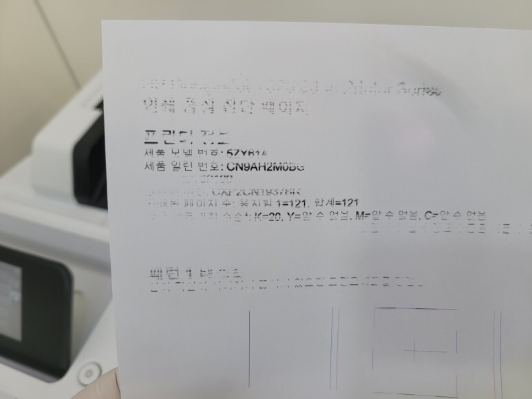 출력불량 및 잉크 카트리지 소모됨 문제로 빠른 전체 점검 필요 이유 :