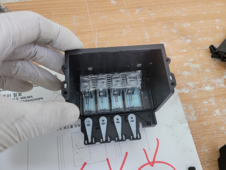 ● HP 952 프린터 헤드 분해 챔버 탄성접착제 보강 및 PCB 납땜처리