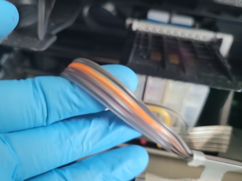 ● 잉크공급선, 호스 내부 잉크경화 세정액 주입 세척