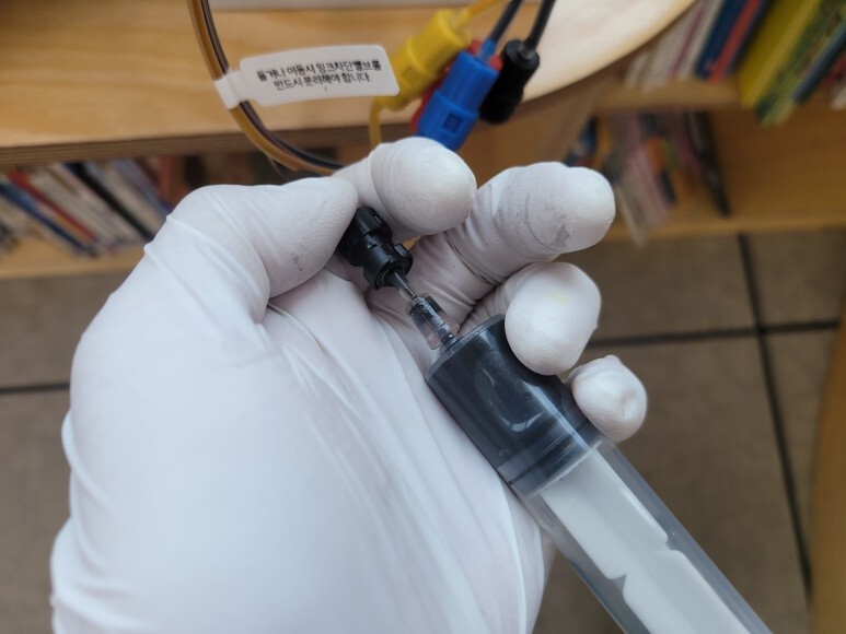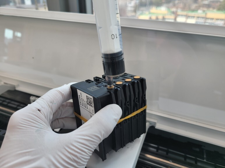● 잉크공급선, 호스 내부 잉크경화 막힘 세정액 주입 세척