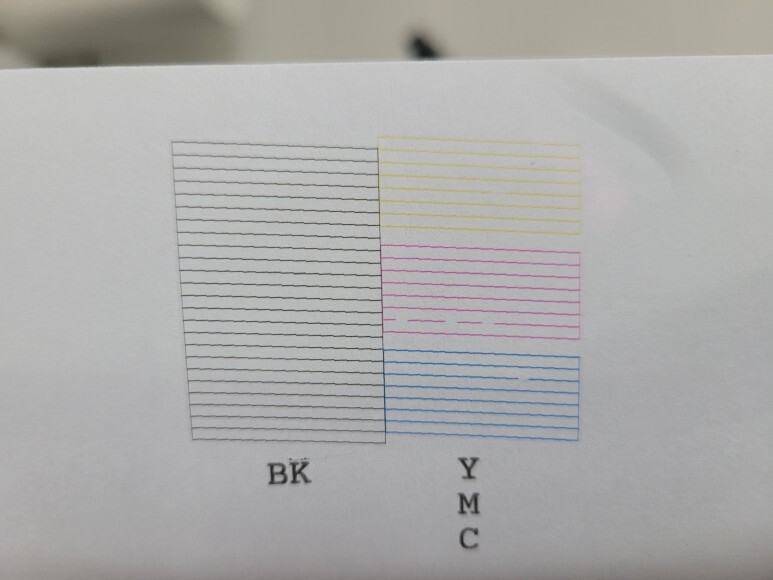 출력상태가 많이 안 좋고 C 파랑색상 출력이 안 되었는데 90%이상 개선되었습니다. 무리한 헤드 세척 및 파워크리닝 등은 내부 오염 및 헤드 노후화, 노즐훼손에 영향을 주므로 더이상 청소 진행은 하지 않았습니다.