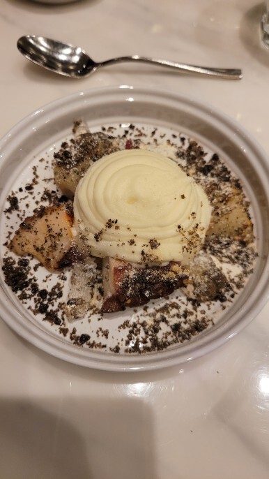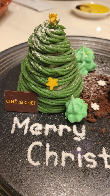 7 럭키 세븐 7번째는 크리스마스에 맞게 금박장식의 크리스마스 트리 몽블랑이란 케이크, 머랭, 아이스크림의 조합의 디저트가 나왔다.