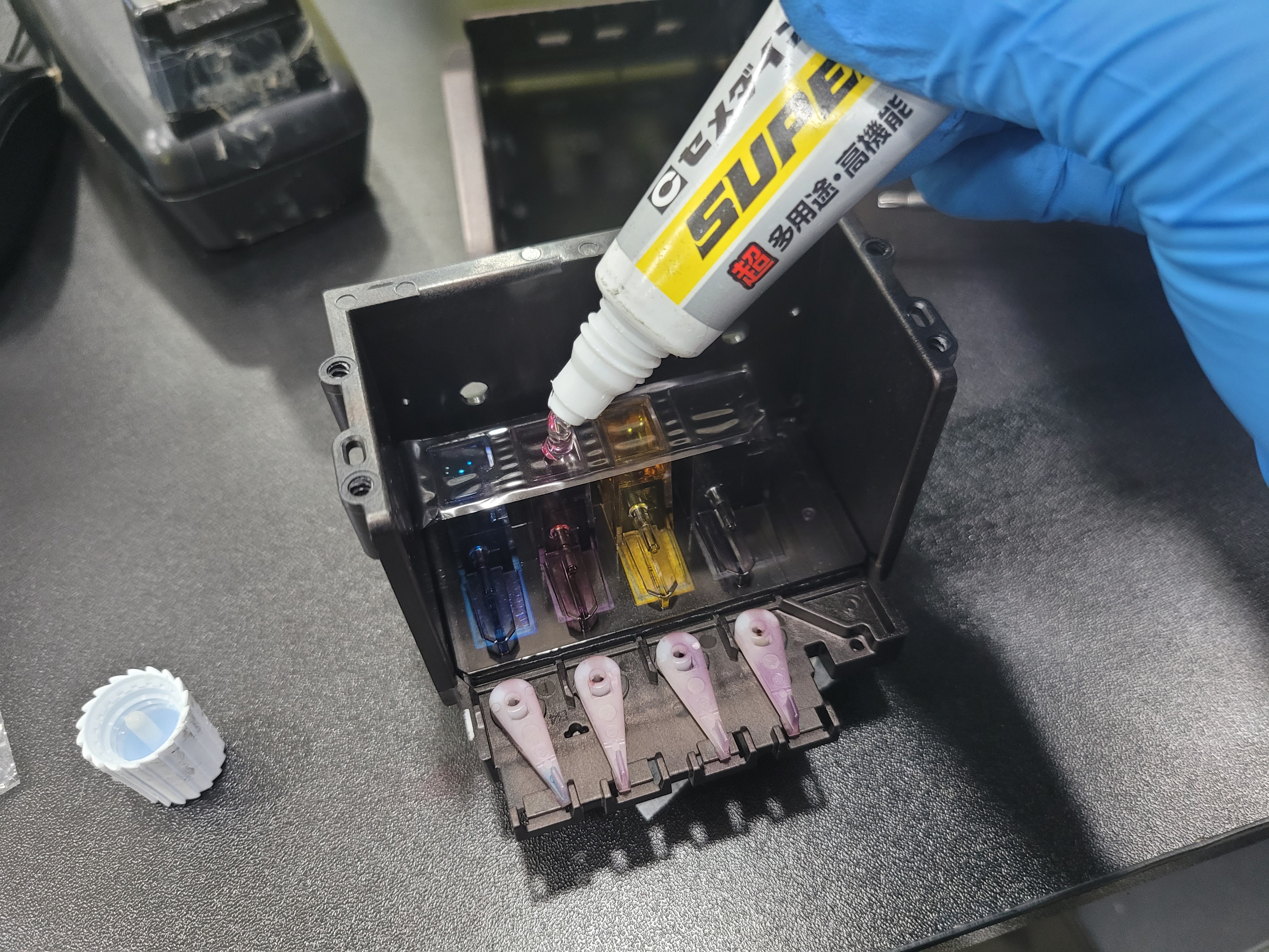 ● HP 962 프린터 헤드 챔버 터짐 탄성접착제 도포 및 테이핑