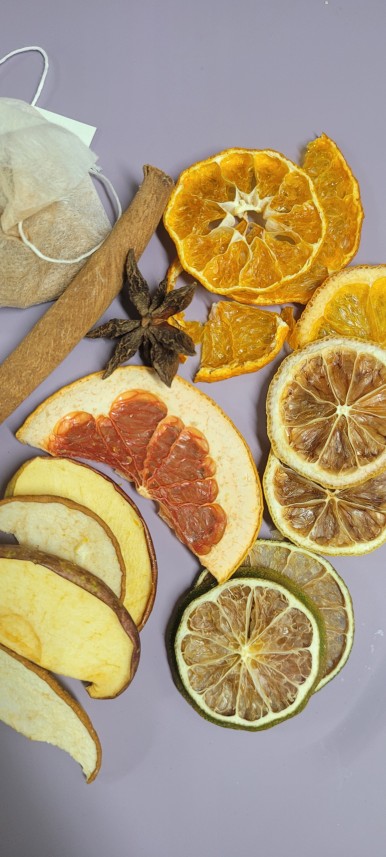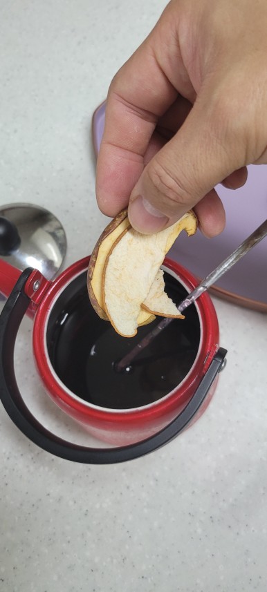 말린 사과와 배, 자몽, 라임을 넣었습니다.