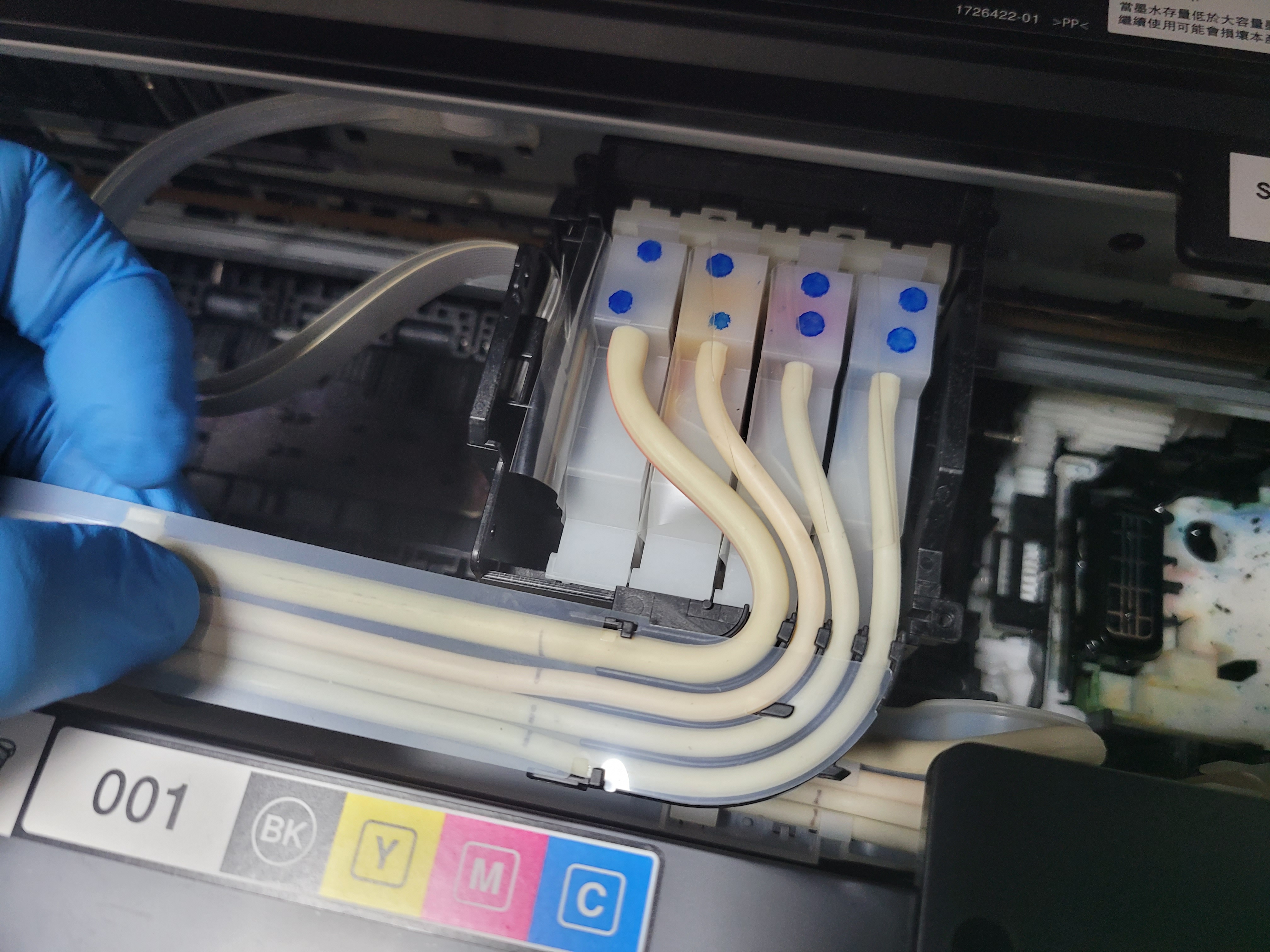 ● 카트리지 분해 석션, 잉크경화 호스 점검 및 잉크 채움