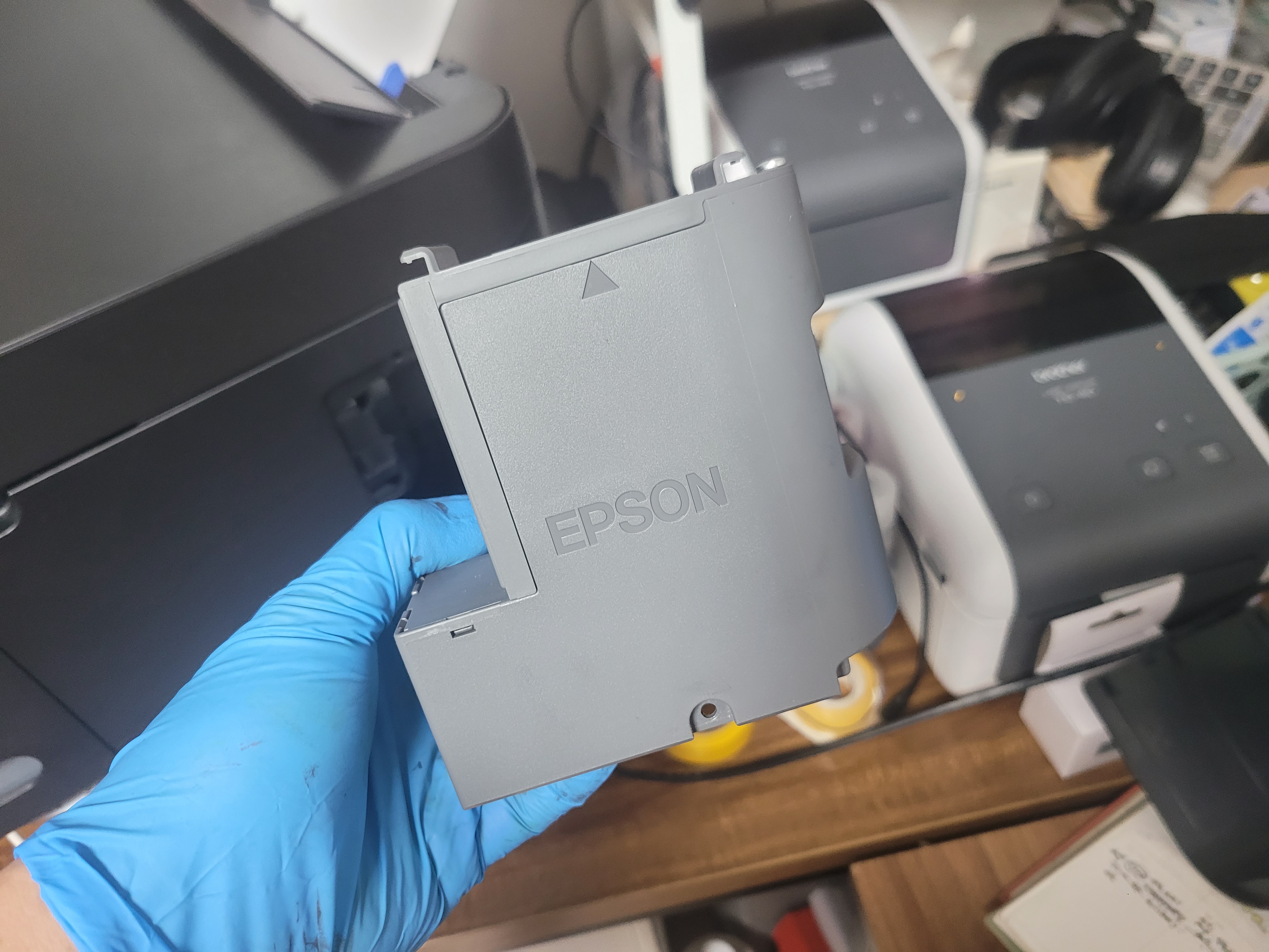 엡손 L4150 , 엡손 L4160 무한잉크 복합기을 프로그램으로 패드 리셋을 하여 사용하기도 하지만, 폐잉크를 비우지 않고 리셋만 하고 장착시에 잉크가 넘쳐 프린터 내부로 들어가서 오염시키기 되면 프린터가 망가지는 경우도 흔하게 있어 T04D1 유지보수상자(Maintenance Box)에 잉크가 차서 넘친다면 내부 폐잉크를 크리닝 후에 패드리셋 처리 또는 물리적 교체해줘야 합니다.