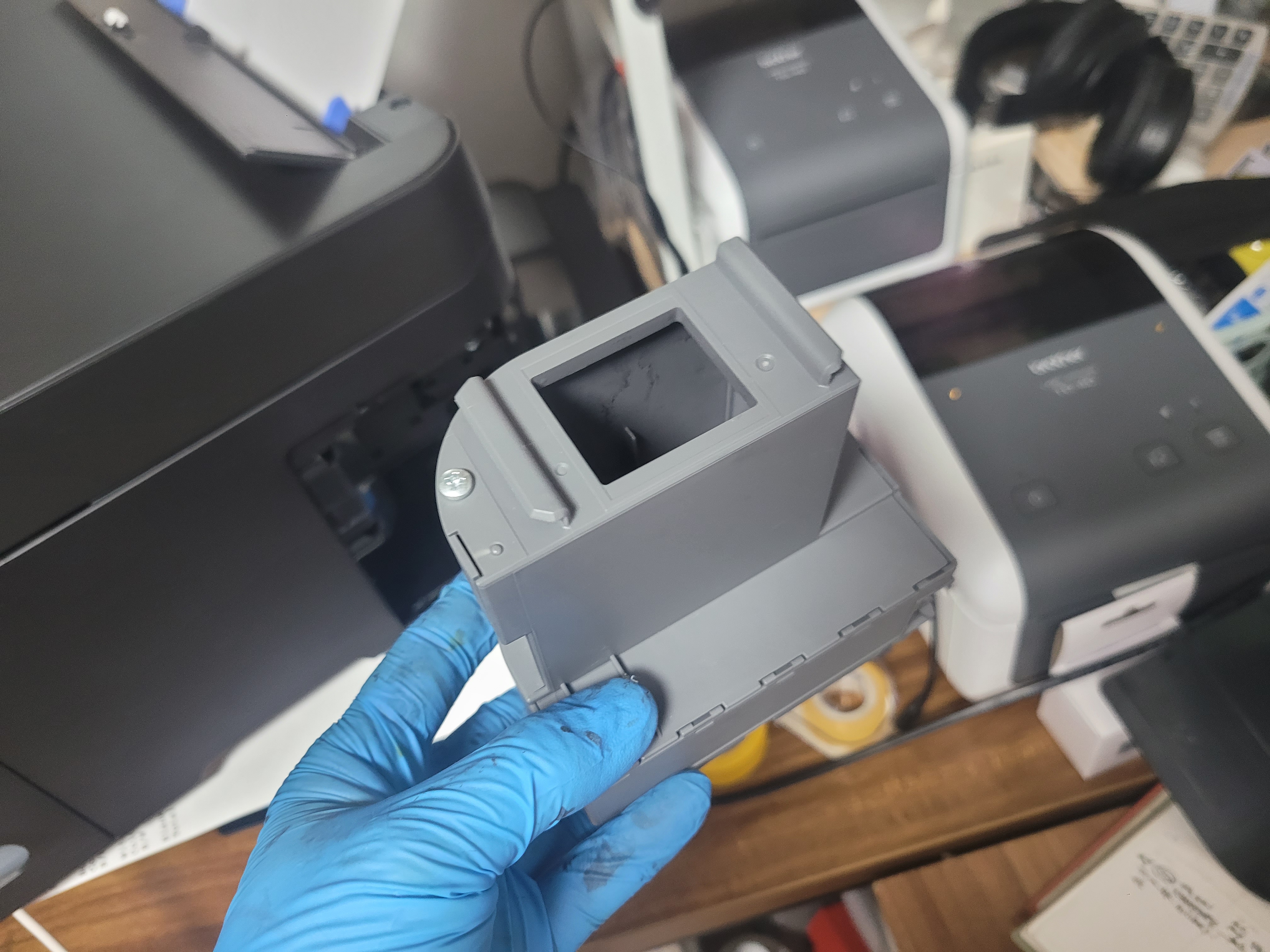 엡손 L4150 무한잉크 복합기인데 출력불량 및 잦은 청소로 인한 폐잉크통에 잉크가 차서 넘쳐 유지보수 상자 교체 요청으로 스케줄 잡아 이동, 수리 완료했습니다.