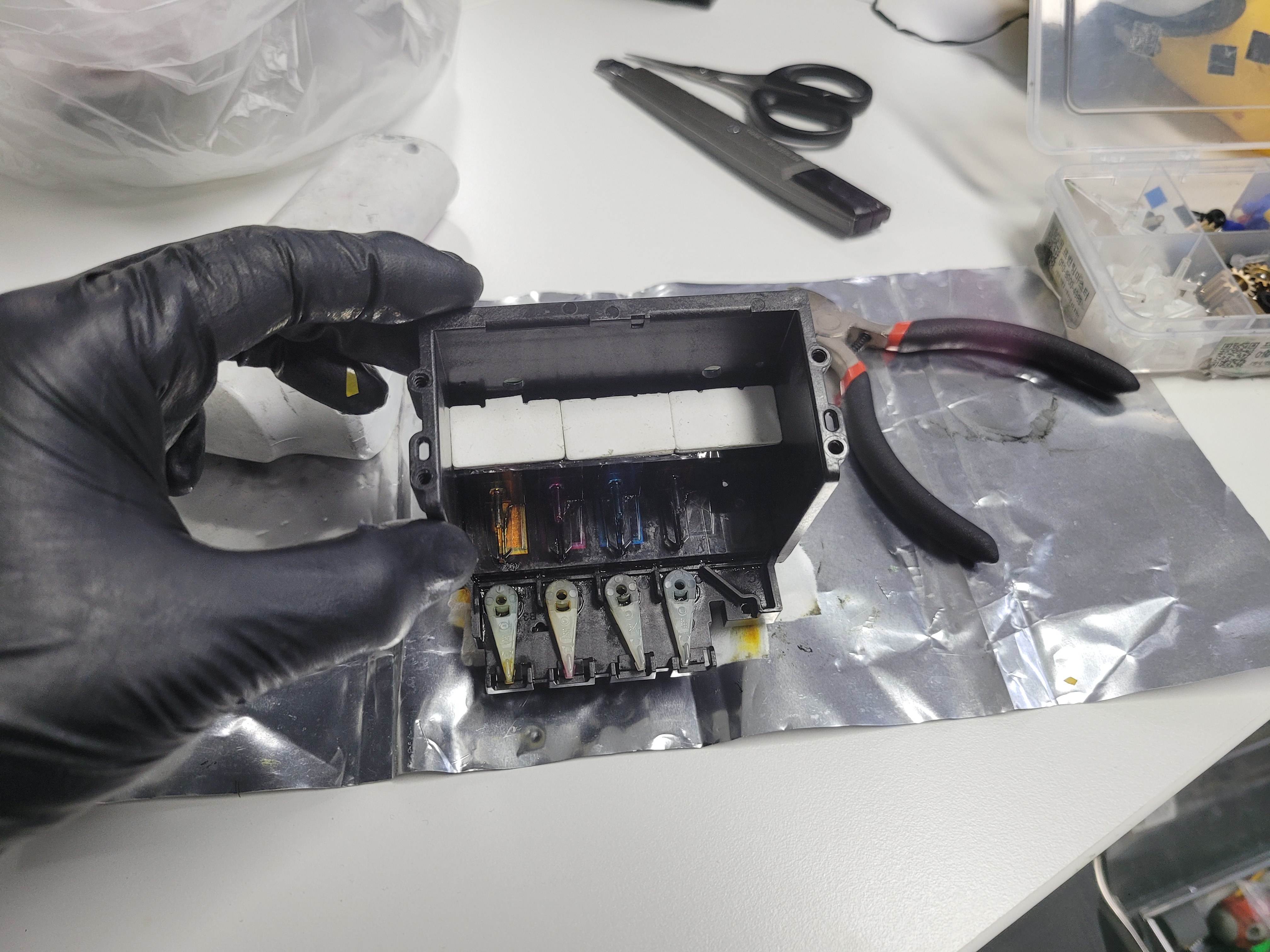 ● HP 711 프린트 헤드 분해, 챔버 탄성접착제 도포 및 테이핑