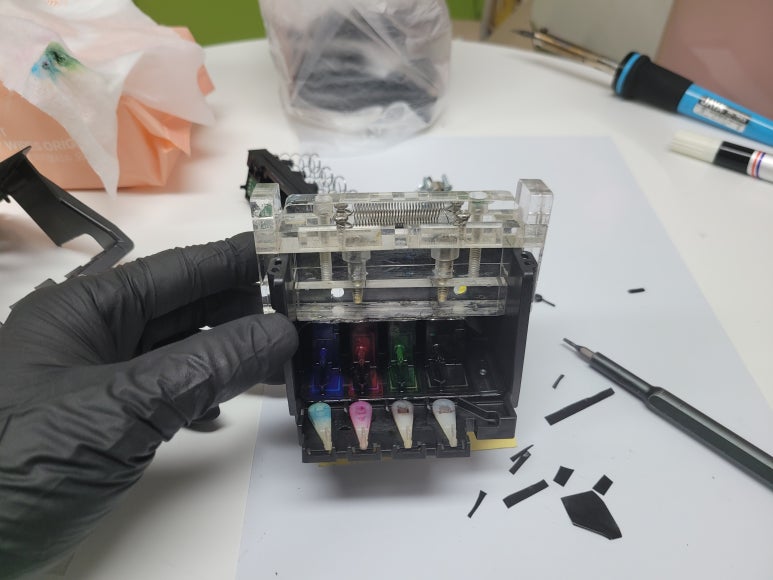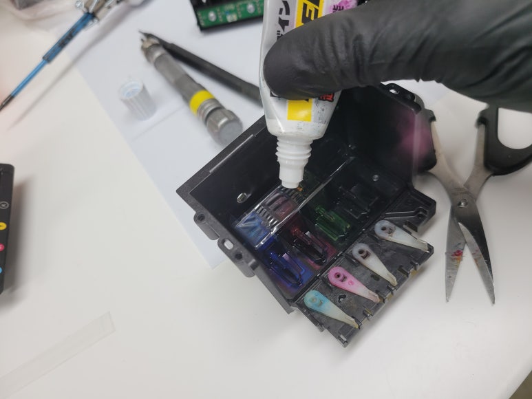 ● HP 952 프린트 헤드 챔버 탄성접착제 도포 및 테이핑