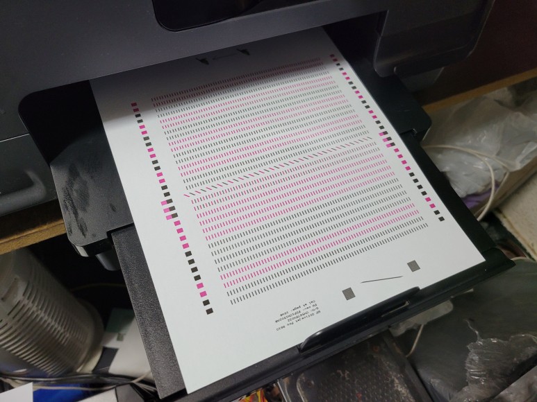 OOBE reset 후 정상적으로 헤드 정렬 페이지가 출력되어 나왔습니다.