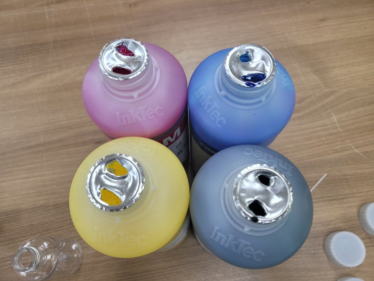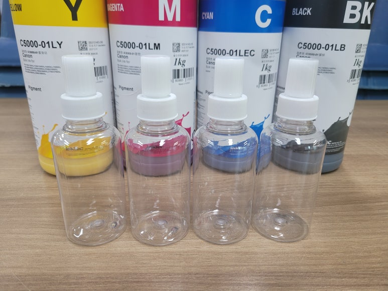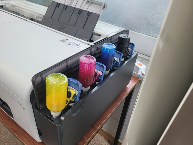 디자인관련 상품 출력 유통판매업체에서 출장설치 요청하여 스케줄 잡아 이동, 출장설치 완료했습니다. 정품잉크 호환 색당 1리터(1.000ml) All 안료잉크 제공, 세팅하였습니다. (초기 세팅시에 120ml 소분 충전병 2회 보충)