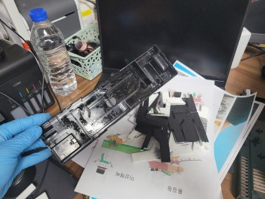 유지보수카트리지(MC-G01) 내부 호스에 실리콘 호스를 연장하고 타공하여 외부로 깔끔하게 빼냈습니다.