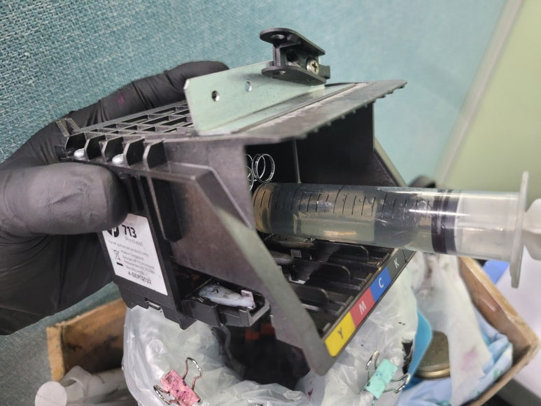 ● HP 712 프린터 헤드노즐 강세정액 주입 세척