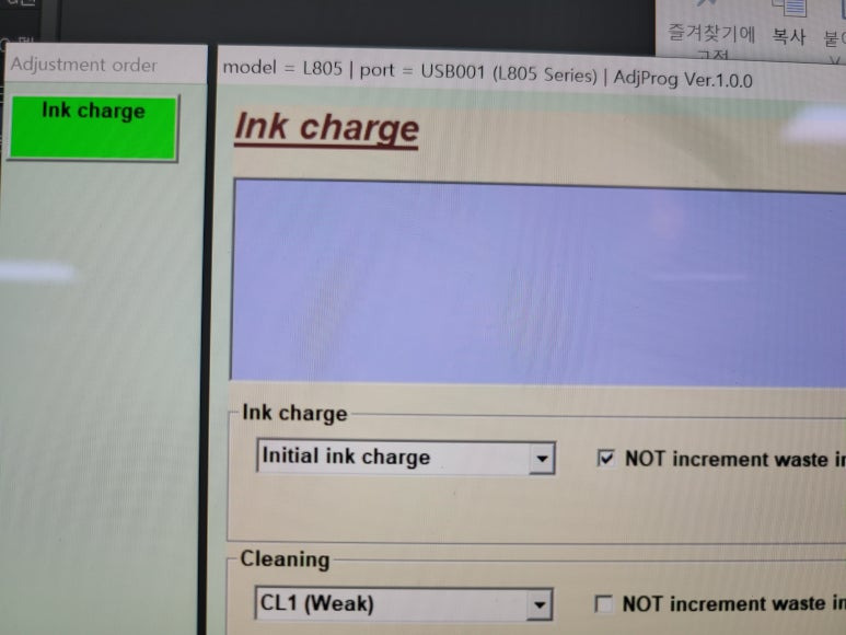 ● 잉크 차징 프로그램 처리 및 노즐점검