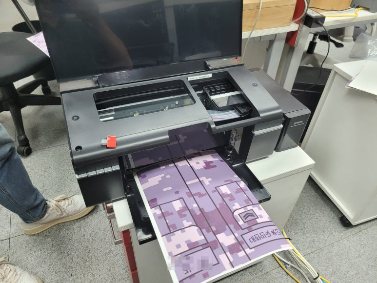 전사용 프린터로 사용하는 엡손 L805 6색 프린터인데 전사지에 스타휠 자국 발생 및 프린터 잉크 패드의 서비스 수명이 다 되었습니다. 오류 메세지로 출력불가, 출장수리 요청하여 스케줄 잡아 이동, 출장수리 완료했습니다.