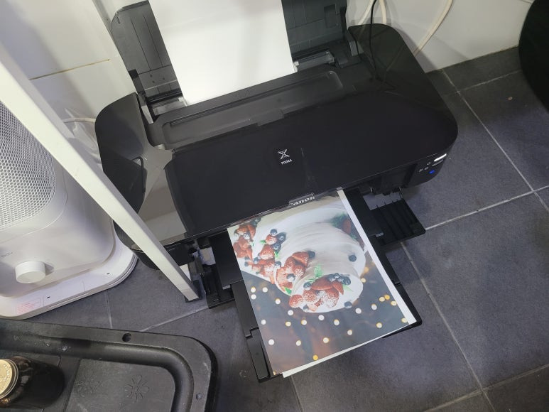 제과제빵 케이크 제작업체에서 사용하는 캐논 iX6770 iX6870 프린터에 식용잉크 카트라지 장착된 프린터를 온라인으로 구매한 케이크 제작 업체인데 출력이 불량. 식용잉크를 카트리지에 주입하여 사용하는 베이킹용 식용용지 프린터로 관리소홀로 수리업체를 찾지 못해 출장 수리 요청하여, 스케줄 잡아 이동하여 출장 수리 완료했습니다.