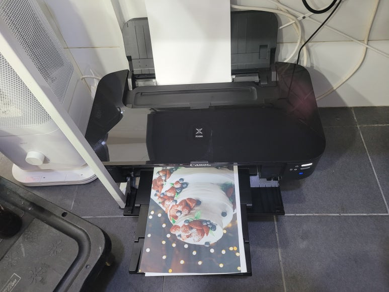 식용페이퍼, 쌀이나 전분 등의 종이, 초콜릿전사지 등에 출력하여 케이크나 제과제빵에 올려서 축하메시지나 기념일, 결혼, 돌잔치 등등에 사용되는 데코레이션 및 디스플레이용 장식 및 사진 출력용 식용페이퍼 프린팅 프린터로 알고 있습니다. 설탕 및 쌀 등드우성분의 식용페이퍼는 밀봉된 상태로 보관되어야 출력시 부드럽고 깨지지 않지만, 외부 실온 노출시 딱딱해지고 깨집니다.