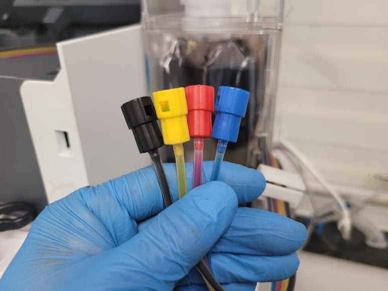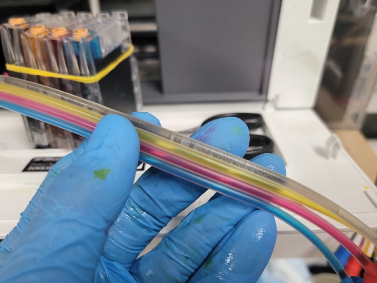 ● 잉크 공급라인 호스 내부 잉크경화 세정액 주입 세척