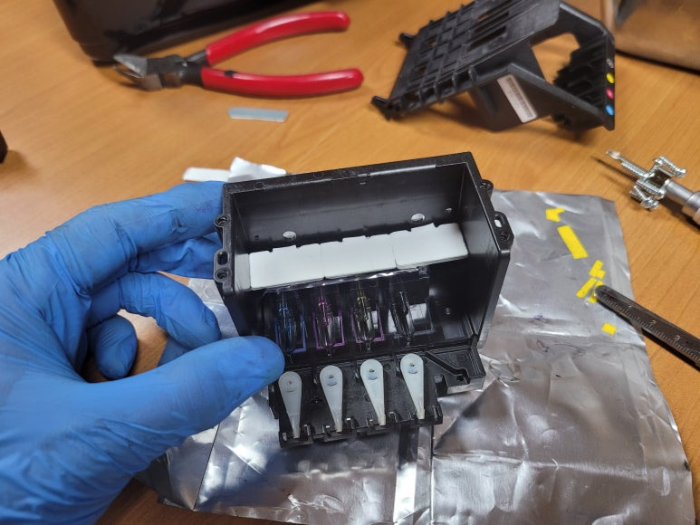 잦은 헤드 청소는 잉크손실, 내부오염, 헤드 노후화 및 칩판부 슈팅에어라인 비닐탈락, 챔버 터짐, 챔버 격벽 크랙 혼색, 노즐 훼손 등 영향을 줍니다. 헤드 격벽 크랙은 헤드 청소가 없더라고 사용중 충분히 생길 수 있는 부분이지만 잦은 헤드 청소는 더욱 빠른 노후 및 캠버 격벽 크랙을 가져 옵니다.