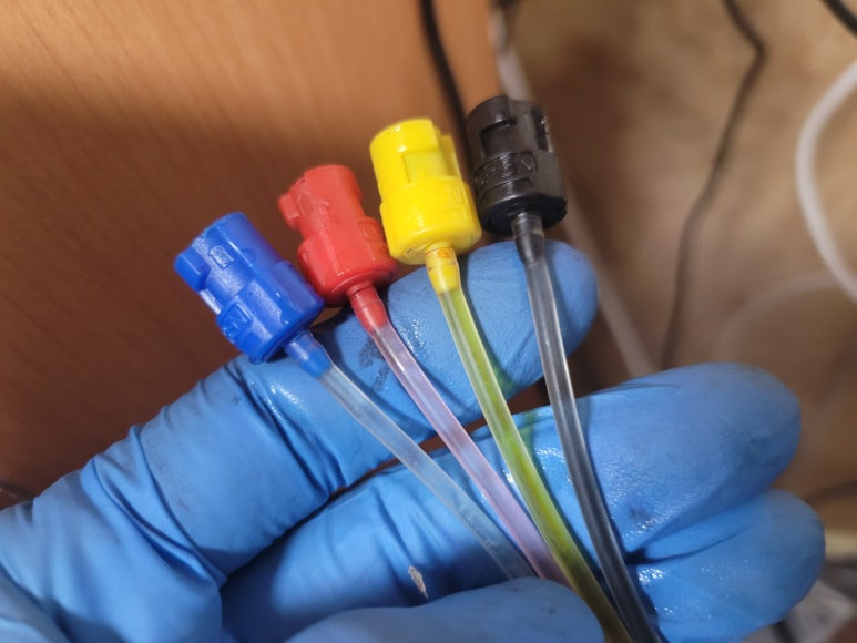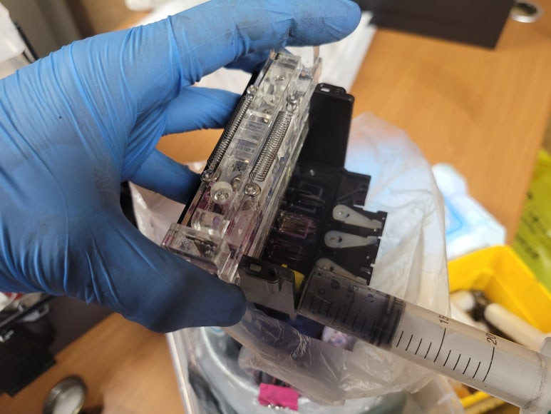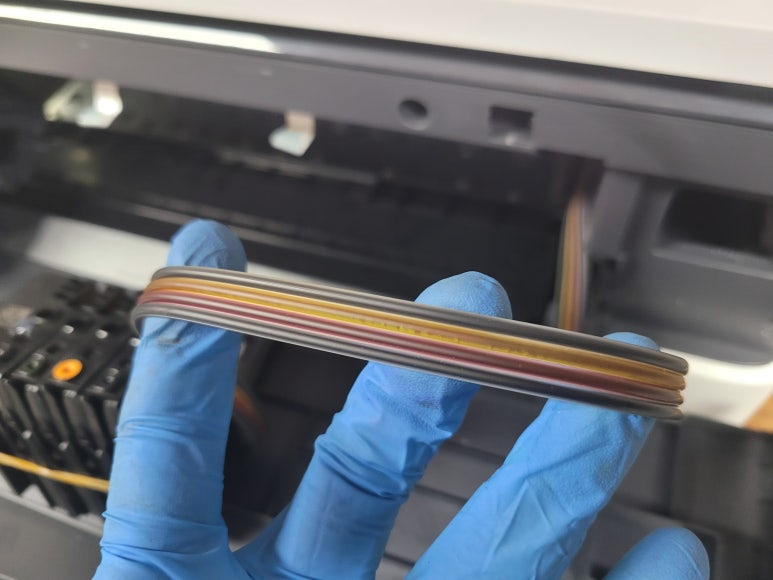 ● 카트리지 및 잉크공급라인 호스 잉크 경화, 세정액 주입 세척