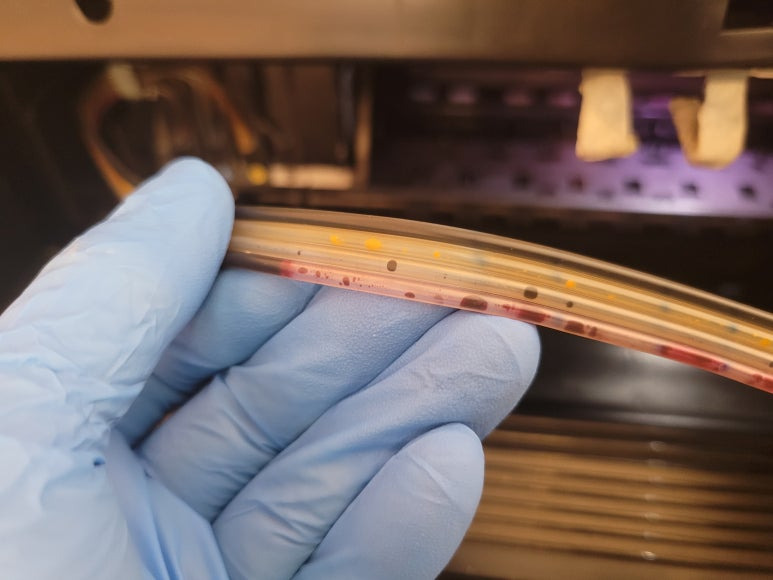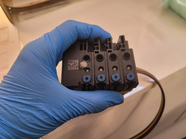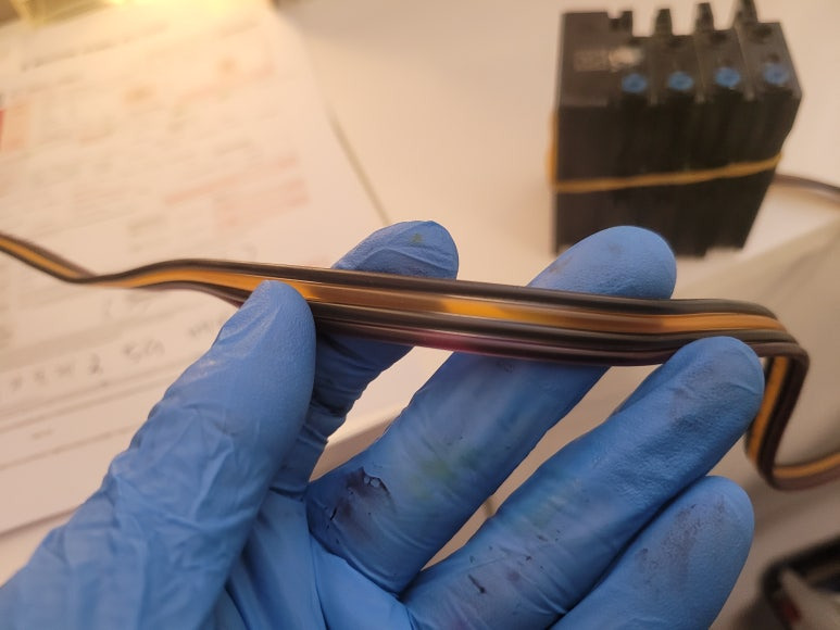 ● 프린터 헤드 클램프 부착 및 핫멜트 보강, 호스 재정리 장착