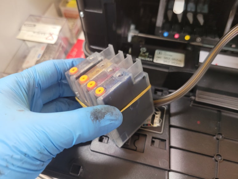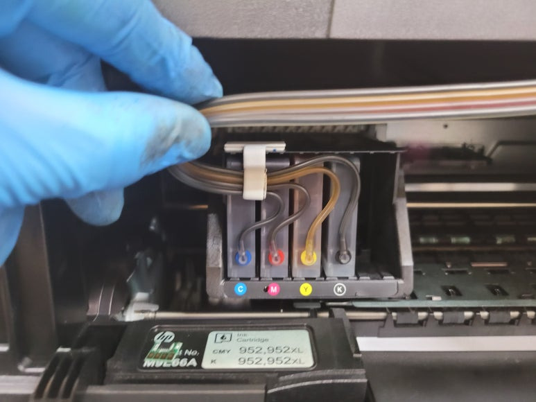 ● 기존 헤드 제거 및 새 프린트헤드 교체