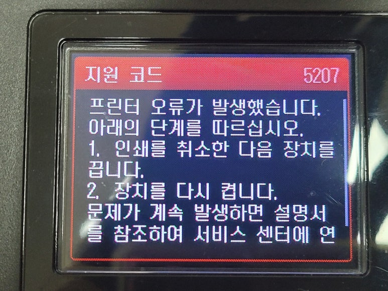 경기 의정부시 민락동 소재, 재택 근무용으로 문서 출력 사용하는 캐논 맥시파이 MAXIFY 캐논 MB2720 무한잉크 장비 사용하는데 지원코드 5207 문제로 출장 수리 요청하여 스케줄 잡아 이동 출장수리 완료했습니다.