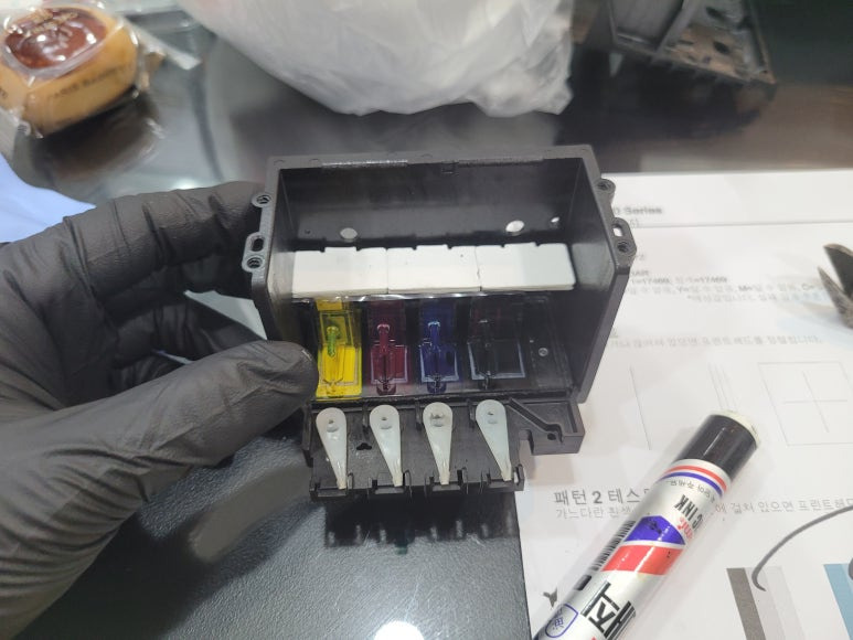● 카트리지 잉크 석션 패킹 부싱 공기유입점검 및 잉크 차징