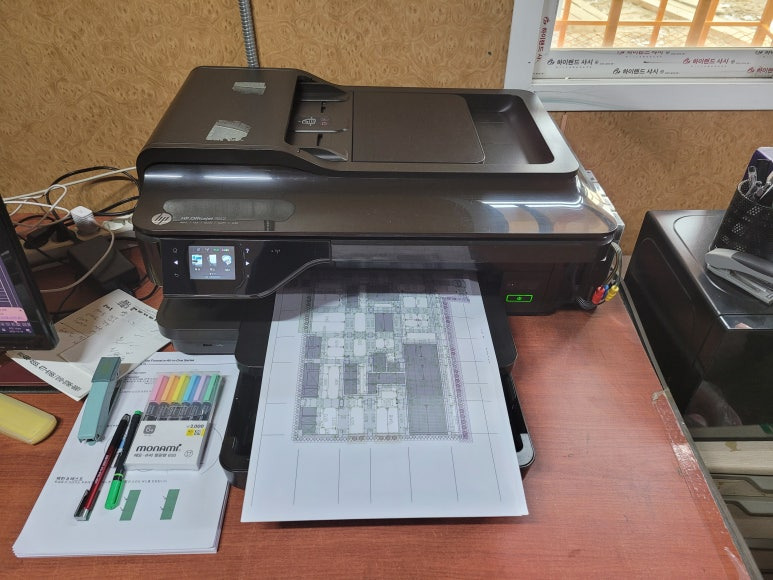 서울시 강동구 길동 소재, 건설현장 사무실에서 A3 도면 출력용으로 사요하는 HP 오피스젯 프로 7612 무한잉크 팩스복합기인데 카트리지 문제로 출장수리 요청하여 스케줄 잡아 이동, 출장수리 완료했습니다.