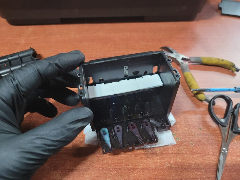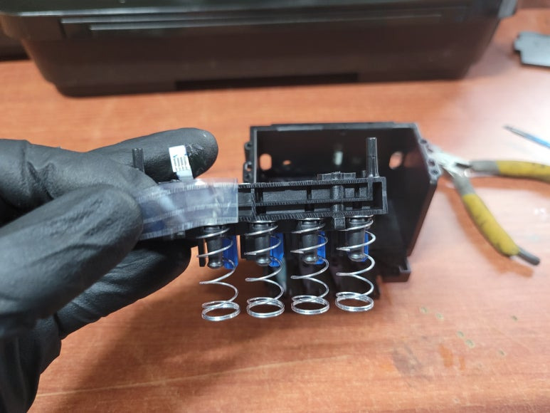 ● 프린터 헤드 챔버 터짐 탄성접착제 도포 및 테이핑
