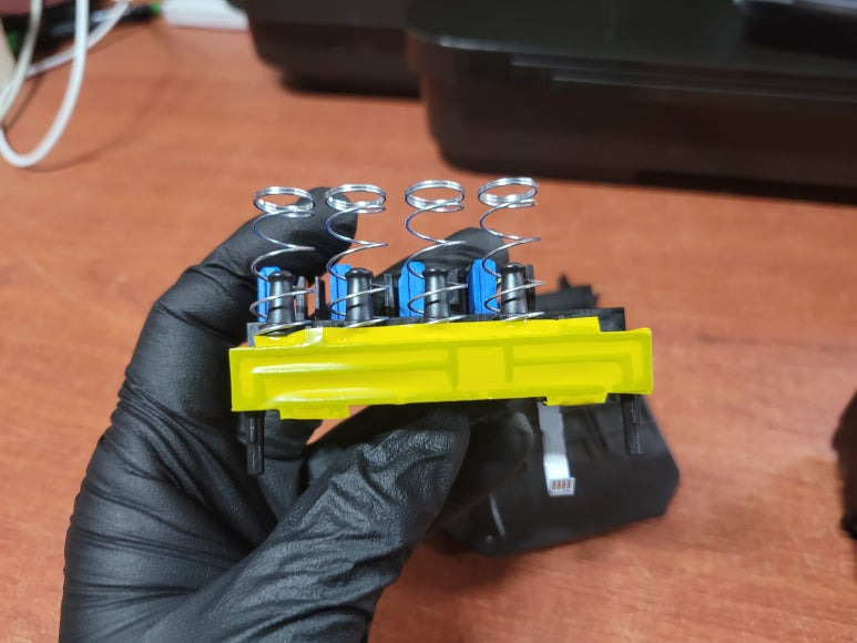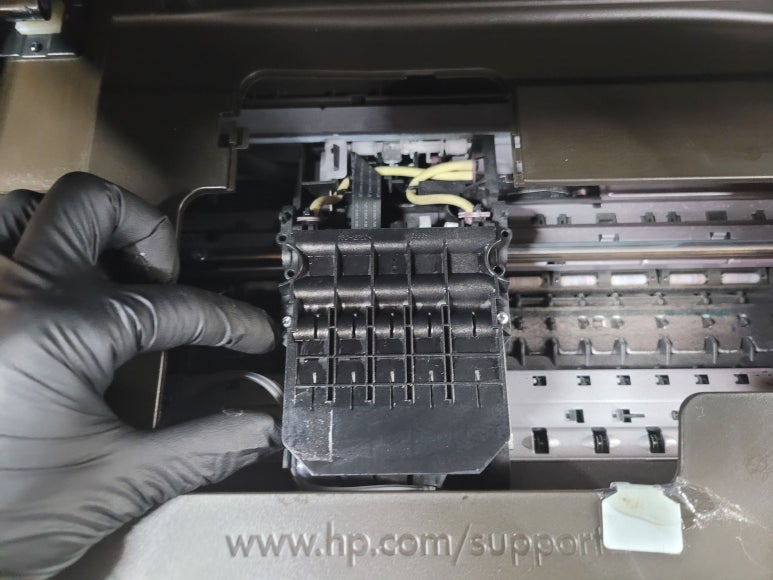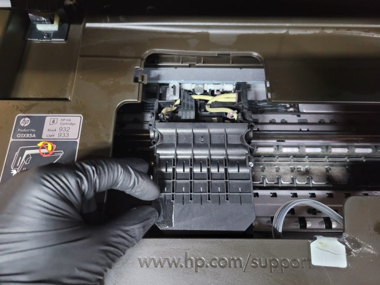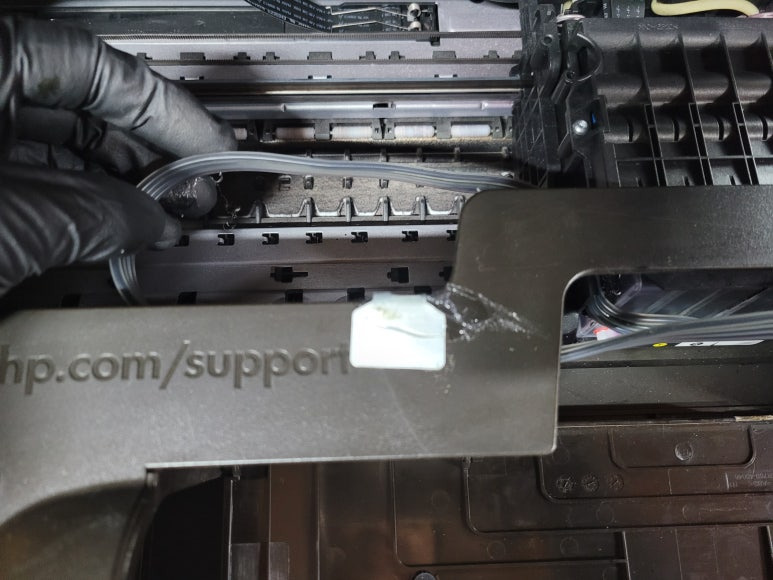 ● 프린터 헤드 클램프 부착 및 핫멜트 보강, 호스 재정리 장착