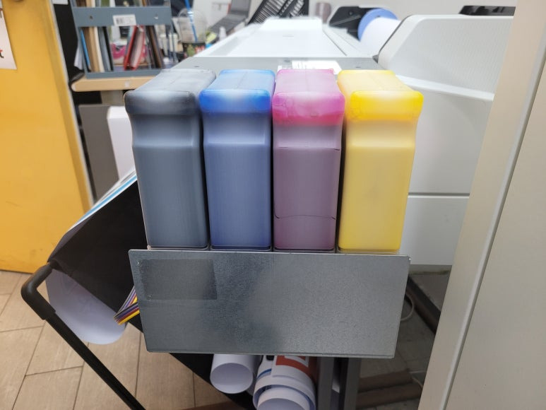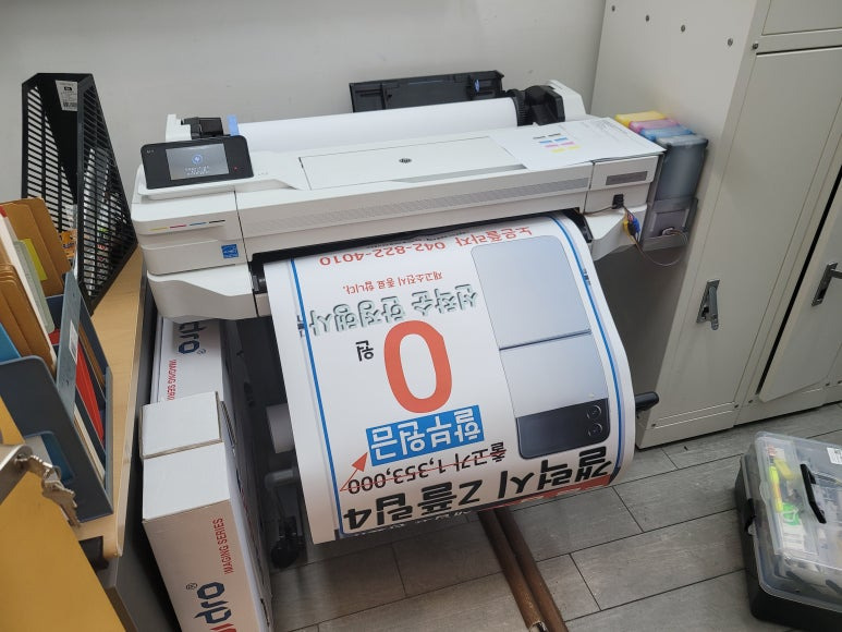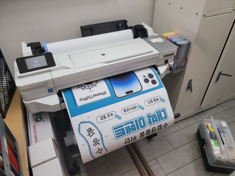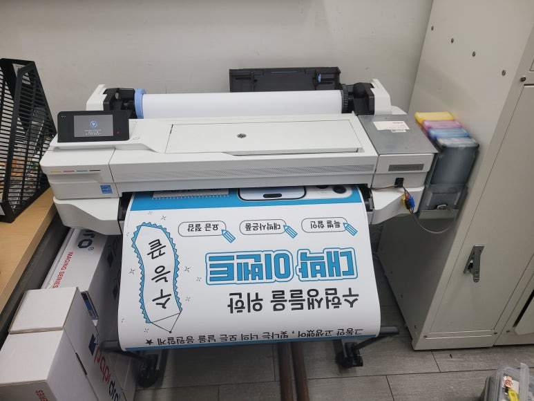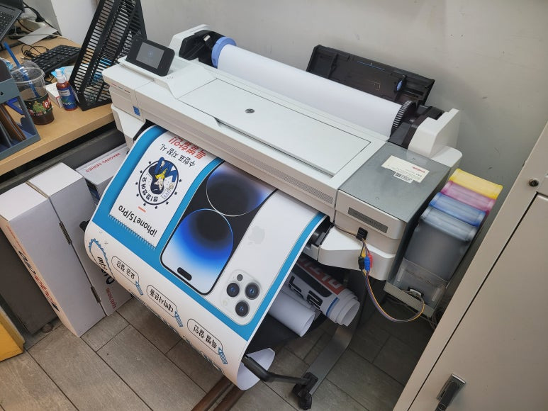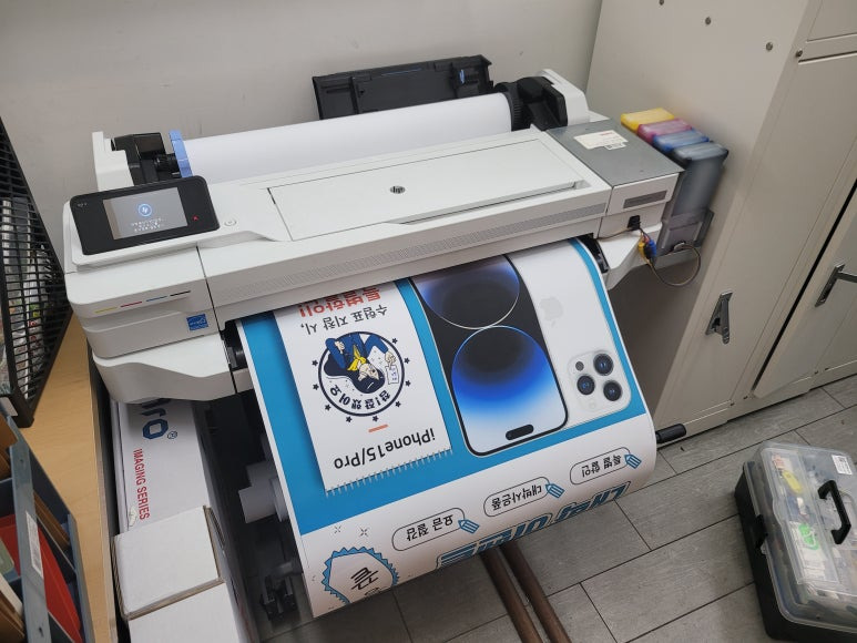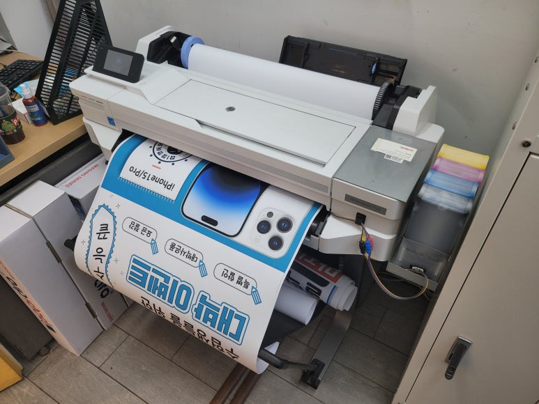 스마트폰, 모바일 대리점에 1년 약정, 무제한 출력, CMS 카드 자동결재 계약으로 HP T525 24인치 A1 플로터로 ALL 안료잉크로 무한잉크 세팅해서 플로터 무한잉크 임대 설치했습니다.