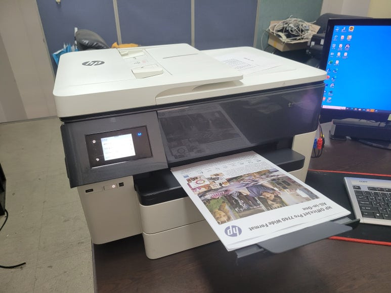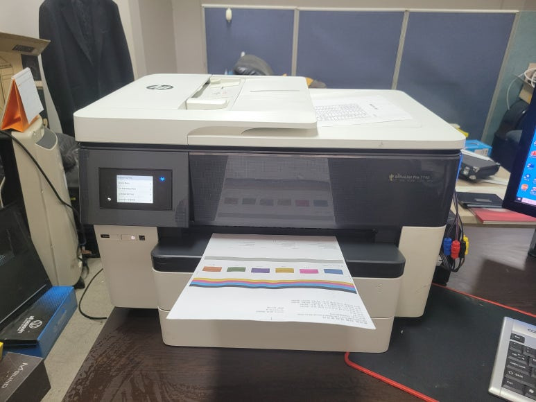 경기도 남양주시 화도읍 소재, 사무실에서 문서 및 팩스용으로 사용중인 HP 오피스젯 프로 7740 무한잉크 팩스복합기인데 잉크 카트리지 소모됨 문제로 출장수리 요청하여 스케줄 잡아 이동, 출장수리 완료했습니다.