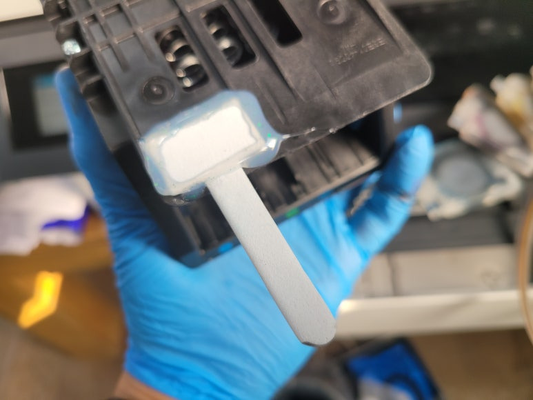 ● 프린터 헤드 챔버 터짐 탄성접착제 도포 및 테이핑