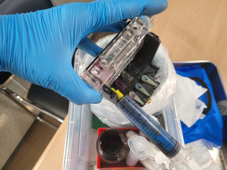 ● 프린터 헤드 강세정액 주입 노즐 세척