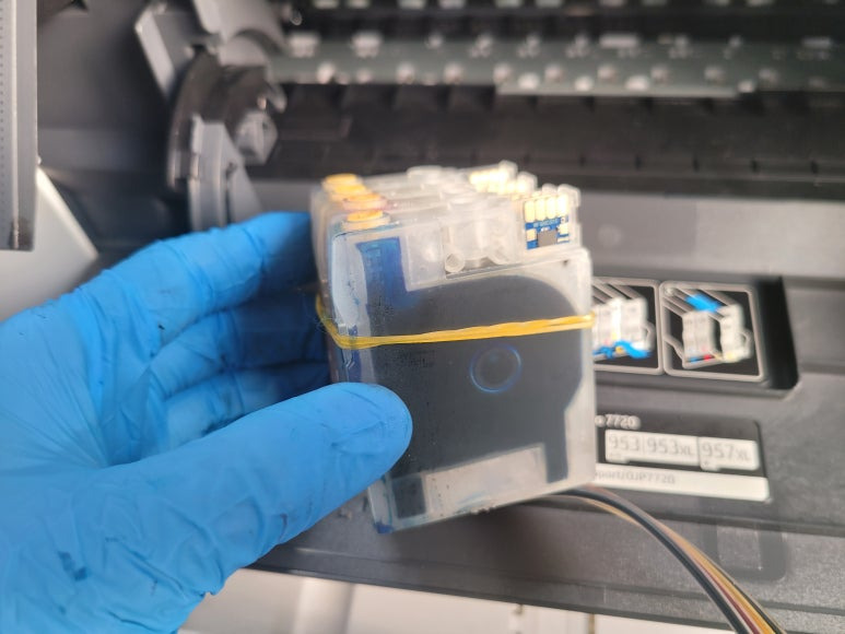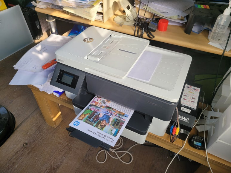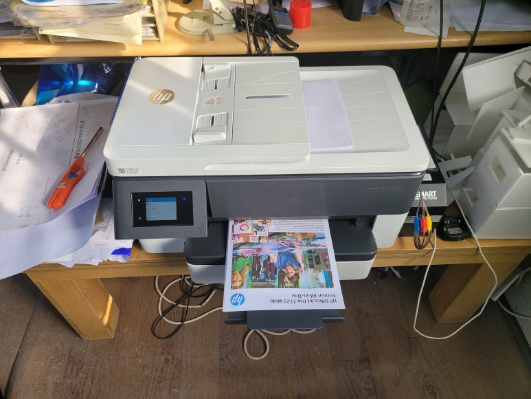수원시 장안구 소재, 컨테이너 건설현장사무실에서 A3 도면 출력 및 문서용으로 사용중인 HP 오피스젯 프로 7720 무한잉크 팩스복합기인데 소모품 시스템 문제로 출장수리 요청하여 스케줄 잡아 이동, 출장수리 방문수리 완료했습니다.