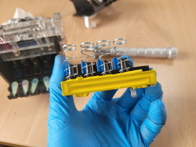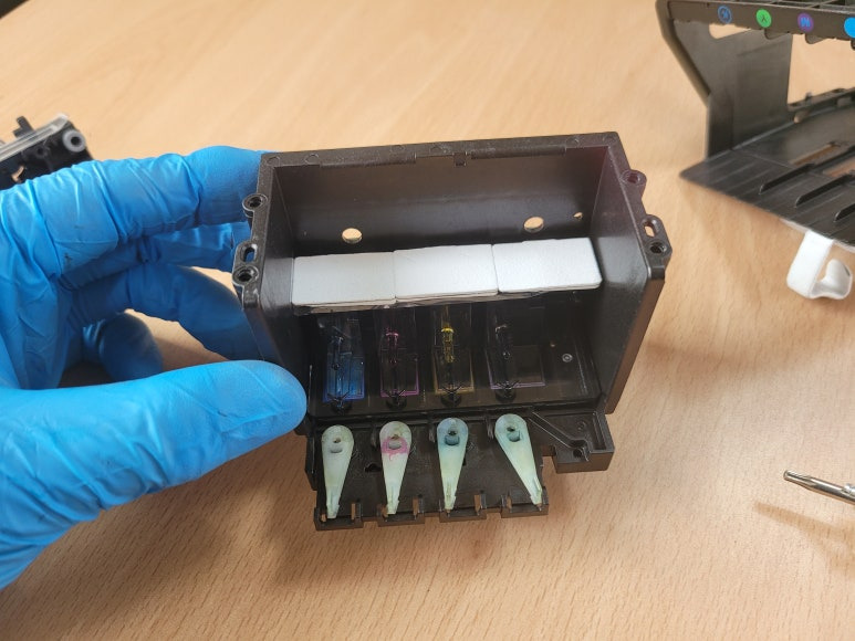 잦은 헤드 청소는 잉크손실, 내부오염, 헤드 노후화 및 칩판부 슈팅에어라인 비닐탈락, 챔버 터짐, 챔버 격벽 크랙 혼색, 노즐 훼손 등 영향을 줍니다. 헤드 격벽 크랙은 헤드 청소가 없더라고 사용중 충분히 생길 수 있는 부분이지만 잦은 헤드 청소는 더욱 빠른 노후 및 캠버 격벽 크랙을 가져 옵니다.
