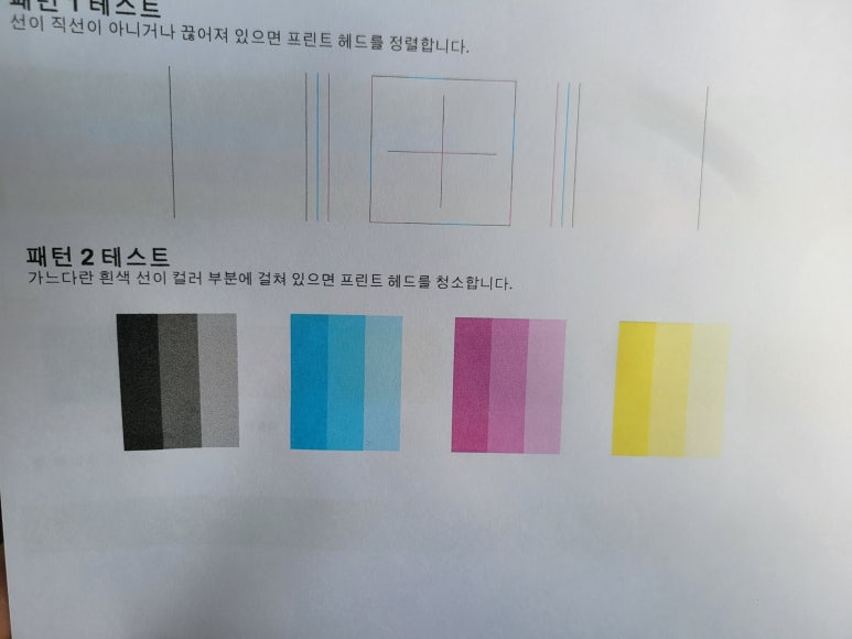 ⚠ 이상 시에만, 액정에서 설정 ➡ 유지 및 보수 ➡ 헤드청소 3단계 1회만 진행 (개선없다면 수리요청)