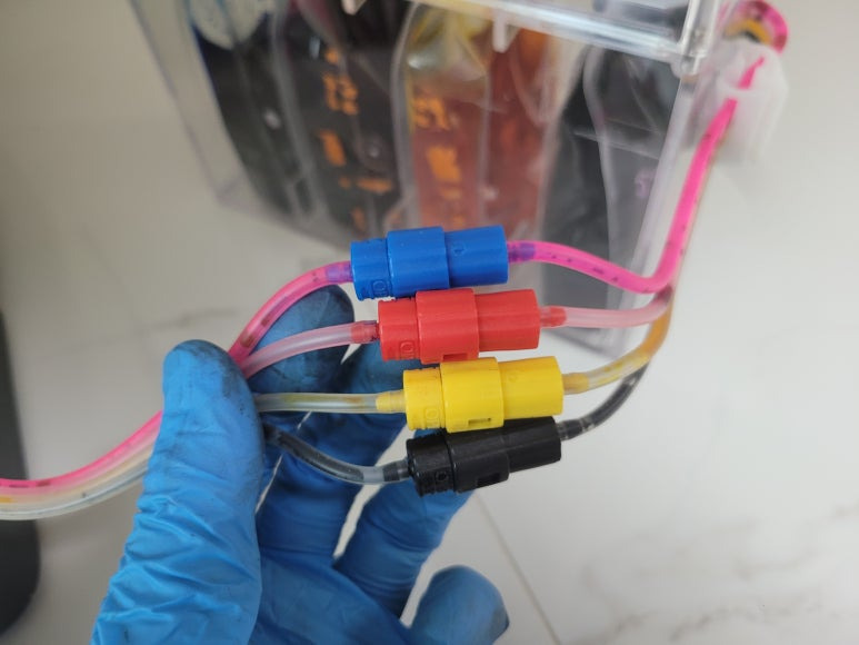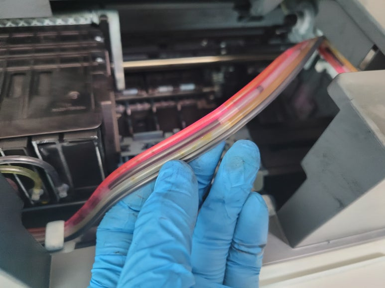 ● 카트리지 잉크 공급라인 잉크 경화, 세정액 주입 세척