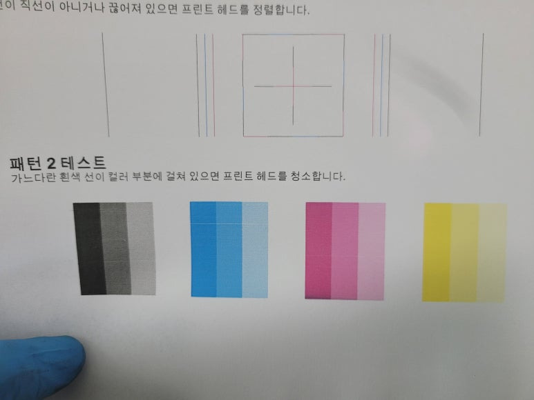⚠ 이상 시에만, 액정에서 설정 ➡ 유지 및 보수 ➡ 헤드청소 3단계 1회만 진행 (개선없다면 수리요청)