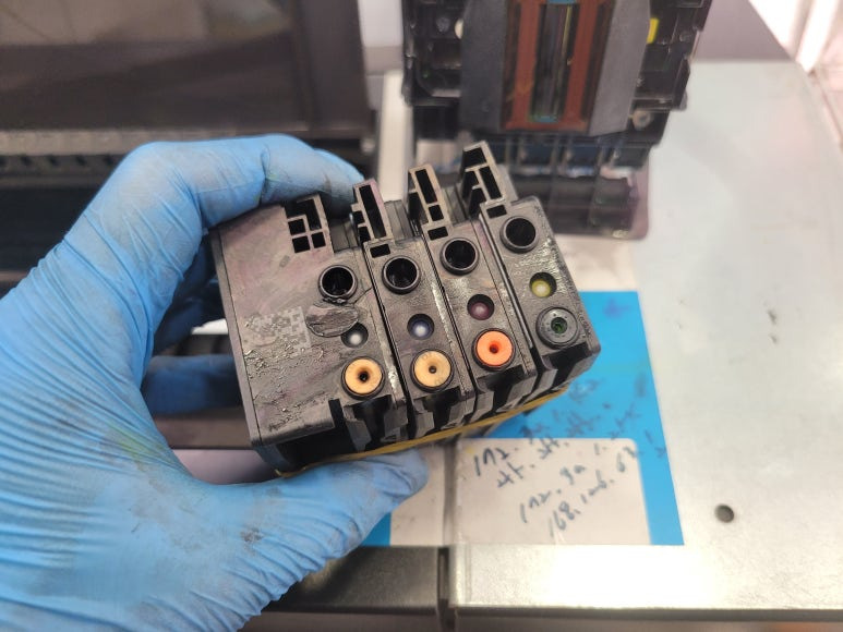 잦은 헤드 청소는 잉크손실, 내부오염, 헤드 노후화 및 칩판부 슈팅에어라인 비닐탈락, 챔버 터짐, 챔버 격벽 크랙 혼색, 노즐 훼손 등 영향을 줍니다. 헤드 격벽 크랙은 헤드 청소가 없더라고 사용중 충분히 생길 수 있는 부분이지만 잦은 헤드 청소는 더욱 빠른 노후 및 캠버 격벽 크랙을 가져 옵니다.