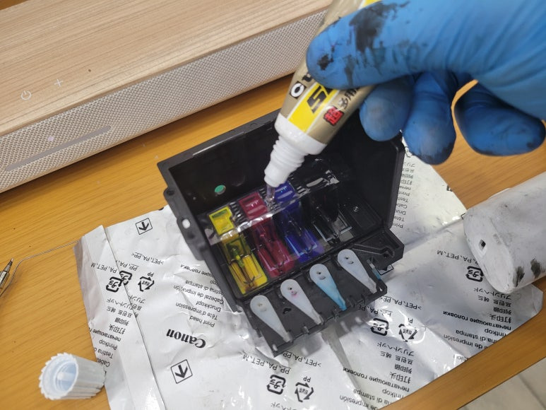 ● HP 711 프린트 헤드 챔버 터짐 탄성접착제 도포 및 테이핑 보강