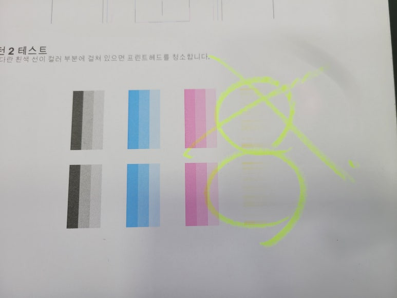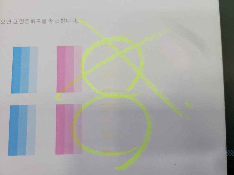 2) 매일 체크하지 않으면 노즐이 미세하게 막히면 헤드 청소를 해야 하는데 헤드청소시 이때, 잉크가 정말 많이 사용됩니다. 잉크 낭비까지 생각한다면 평소 출력해 체킹하는 게 좋습니다.(고지혈/동맥경화시 의료비가 듭니다)