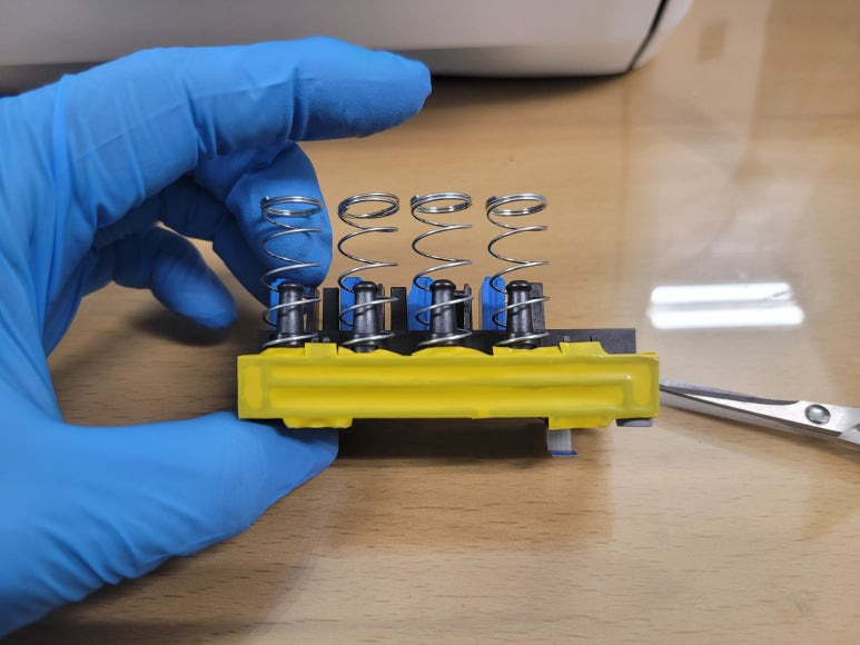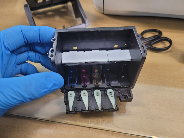 ● 프린터 헤드 챔버 터짐 탄성접착제 도포 및 테이핑