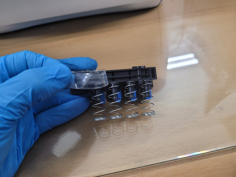 ● 프린터 헤드 클램프 부착 및 핫멜트 보강, 호스 재정리 장착