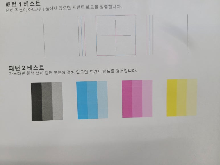 2) 매일 체크하지 않으면 노즐이 미세하게 막히면 헤드 청소를 해야 하는데 헤드청소시 이때, 잉크가 정말 많이 사용됩니다. 잉크 낭비까지 생각한다면 평소 출력해 체킹하는 게 좋습니다.(고지혈/동맥경화시 의료비가 듭니다)