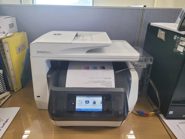 문서 및 팩스용으로 사용중인 HP 오피스젯 프로 8720 무한잉크 팩스복합기인데 소모품 시스템 문제로 출장수리 요청하여 스케줄 잡아 이동, 출장수리 완료했습니다.