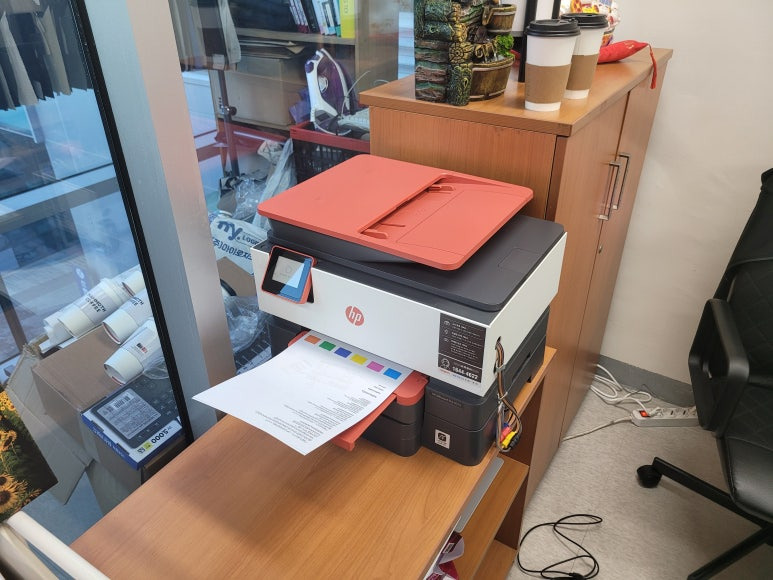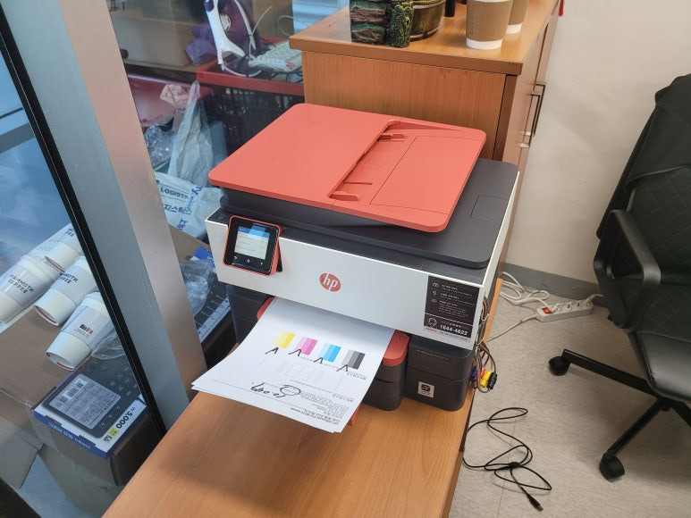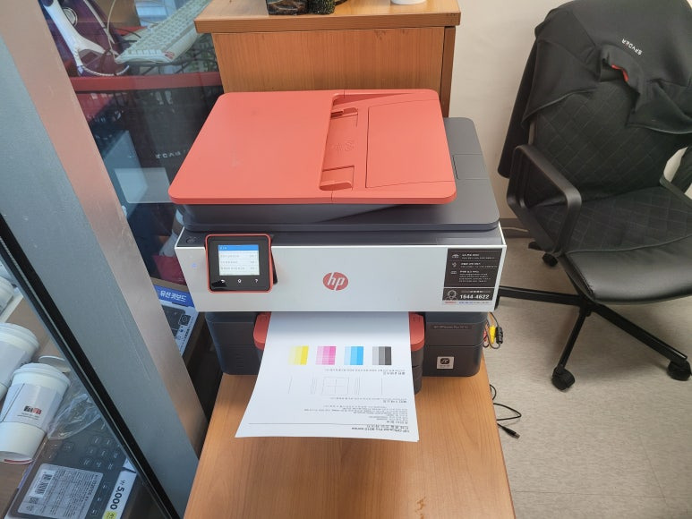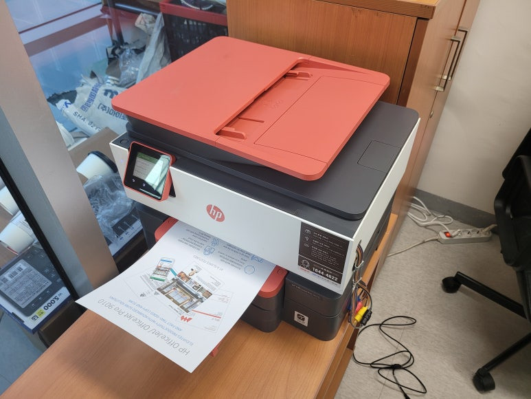 서울 강서구 가양동 소재 사무실에서 문서 및 팩스, 스캔, 복사 출력용으로사용할 HP 9010 팩스복합기 무한잉크 임대 설치 요청으로 1년 약정 자동연장 , 월 1,000장 출력기준 월 33,000원, CMS 자동 계좌이체 계약으로 HP 9010 무한잉크, 임대형 및 기업형, B2B용 (보험사, 군부대, 학교, 학원, 부동산, 핸드폰매장, 교육사 등등)으로 사용되는 칩없이 구동하는 기업형 No Chip (Chipless Solution) 무한잉크 팩스복합기 장비를 스케줄 맞춰 출장설치 완료 했습니다.