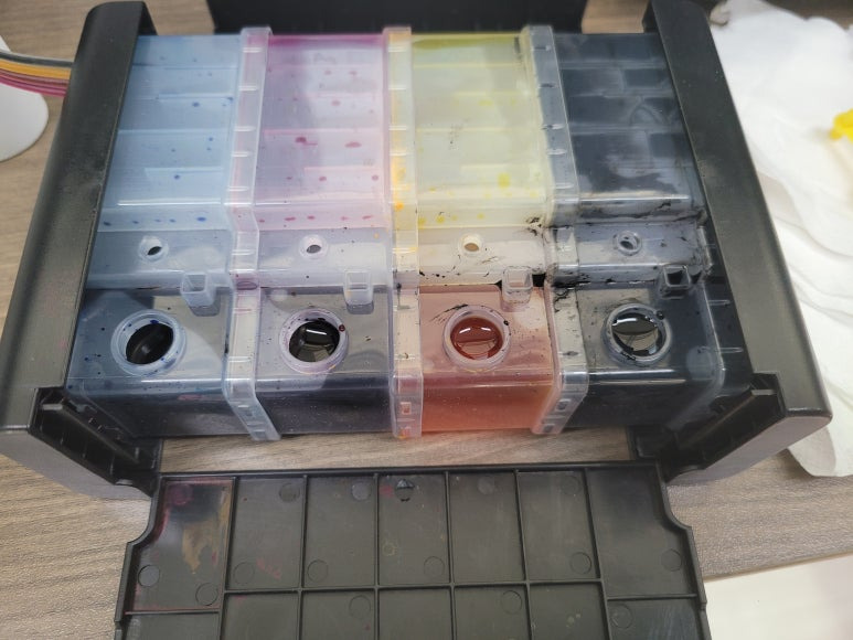 ● 공급기 내부 잉크 소진, 잉크 4색 보충